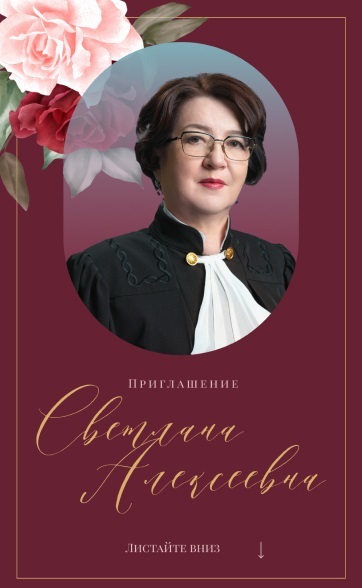 В связи с этими знаменательными для меня событиями приглашаю вас, близких мне людей, коллег, друзей, родственников, на замечательный вечер отдыха и приятных воспоминаний.